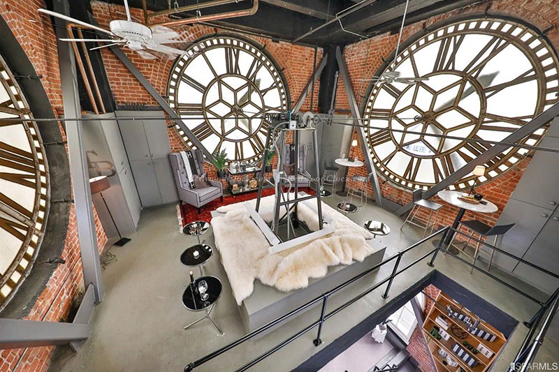 San Francisco’s historic registered Landmark Clock Tower four story penthouse loft apartment with conversation piece furnished room inside the clock is listed at $8.5 million.